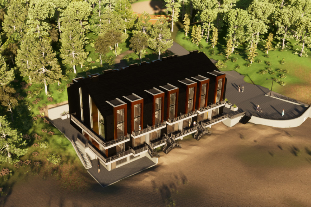 Būvdarbu procesā Apartamentu viesnīcas ēkā ir paredzēti ne tikai apartamenti viesu izmitināšanai, bet arī kafejnīcas zona, SPA zona ar pirtīm un atpūtas zāle, nelielu svinību organizēšanai. Ēka tiek veidota ar vienkāršām un mūsdienīgām formām, izmantojot kvalitatīvus un energoefektīvus apdares materiālus. Ēkai paredzēti 3 virszemes stāvi un tās kopējā platība sasniedz ap 1500 m2. Šobrīd objekts atrodas būvniecības procesā. Atpūtas ēka Katrīnbādes ielā 4, Saulkrastos